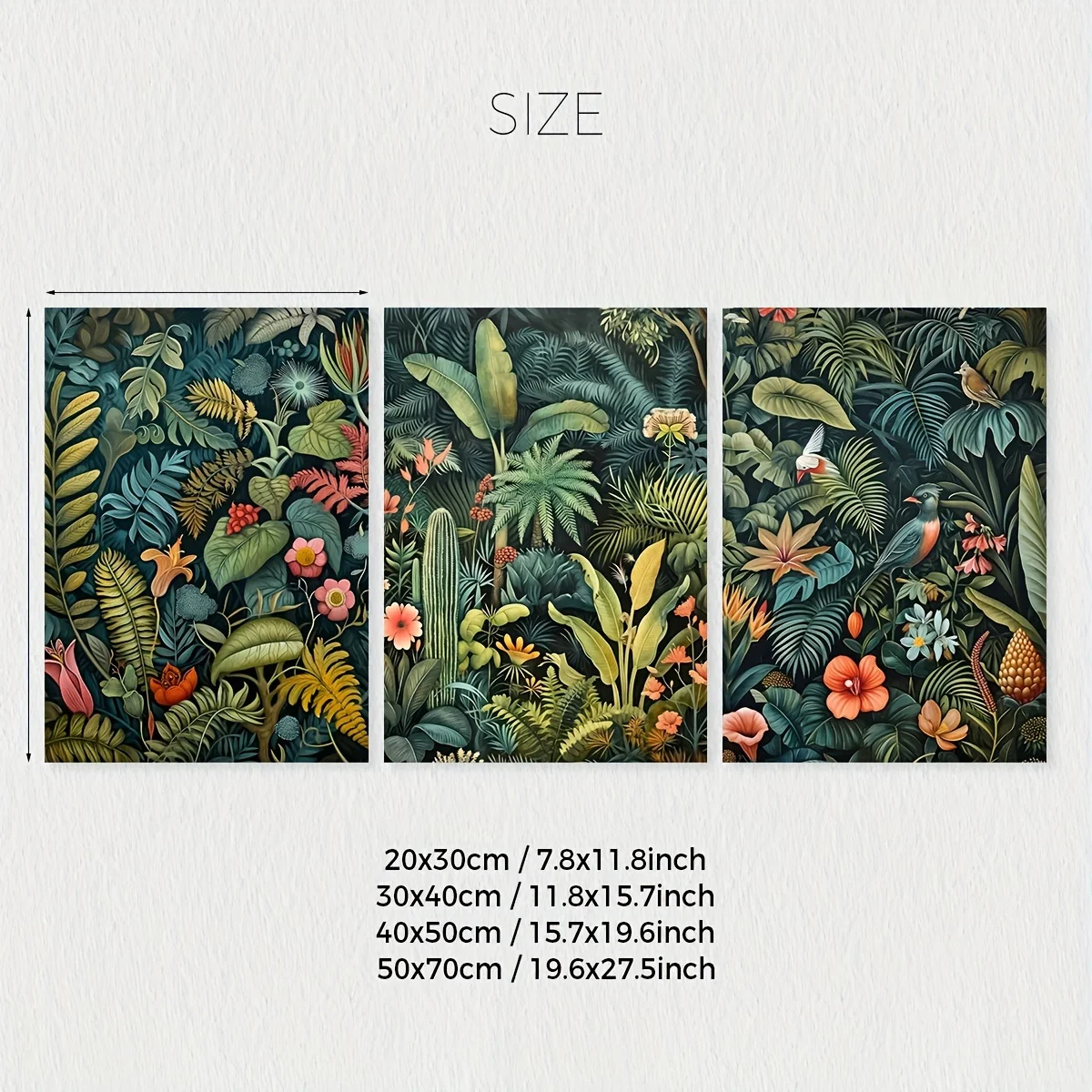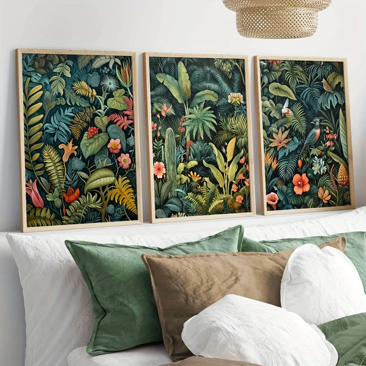 3pcs Set Vintage Wall Decor Henry Rousseau Flower and Leaves Woodland Wall Decor, No Frame