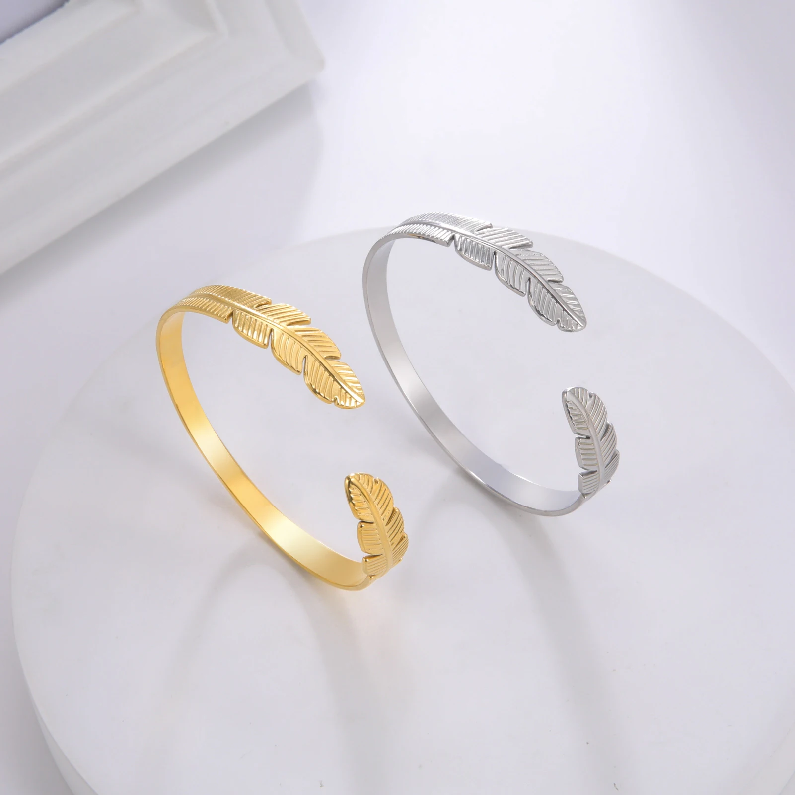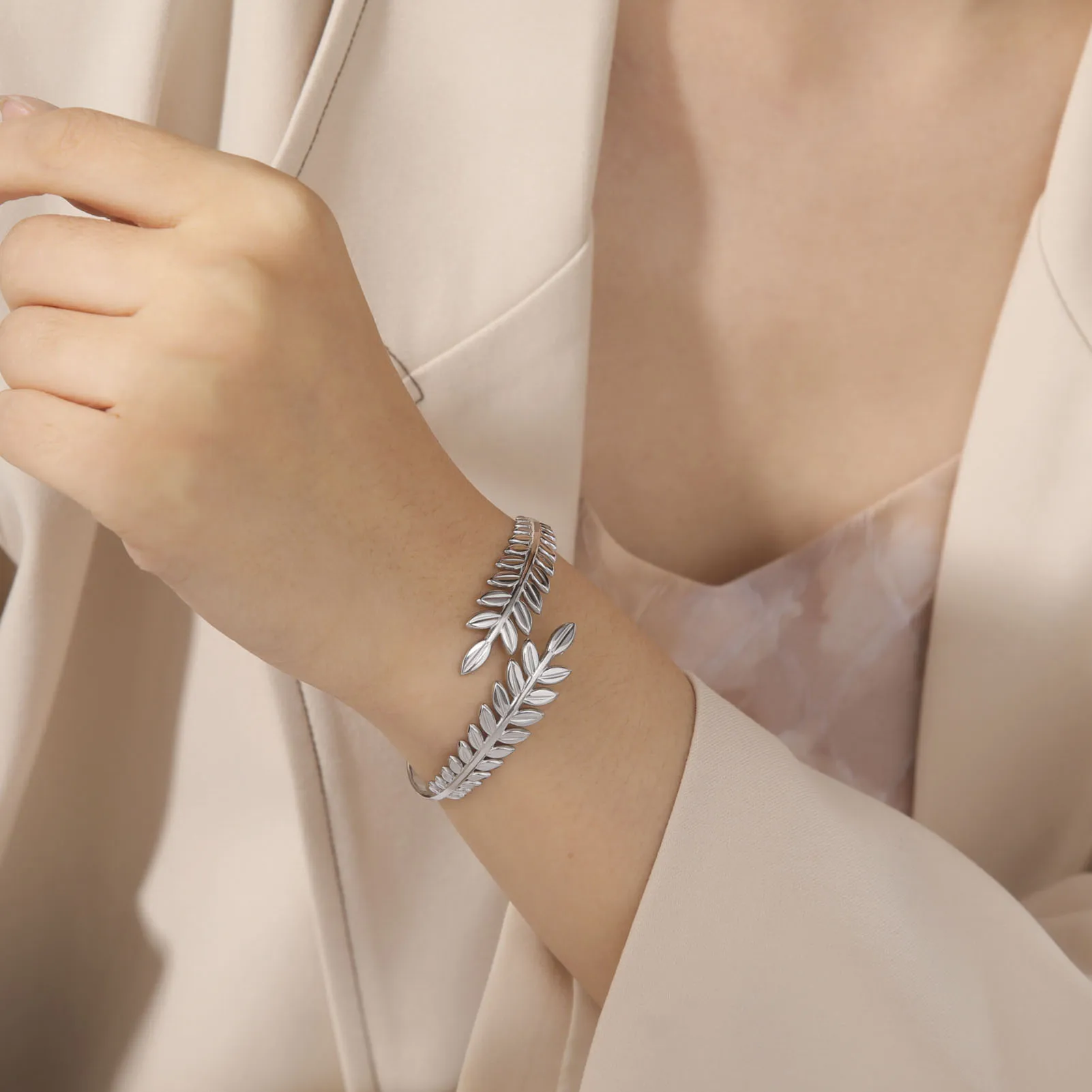 5. Product Name : Olive Branch Leaf Double-Headed Leaf Open Bracelet for Women Men Fashion Gold Silver Color Stainless Steel Bangles Jewelry Gift
